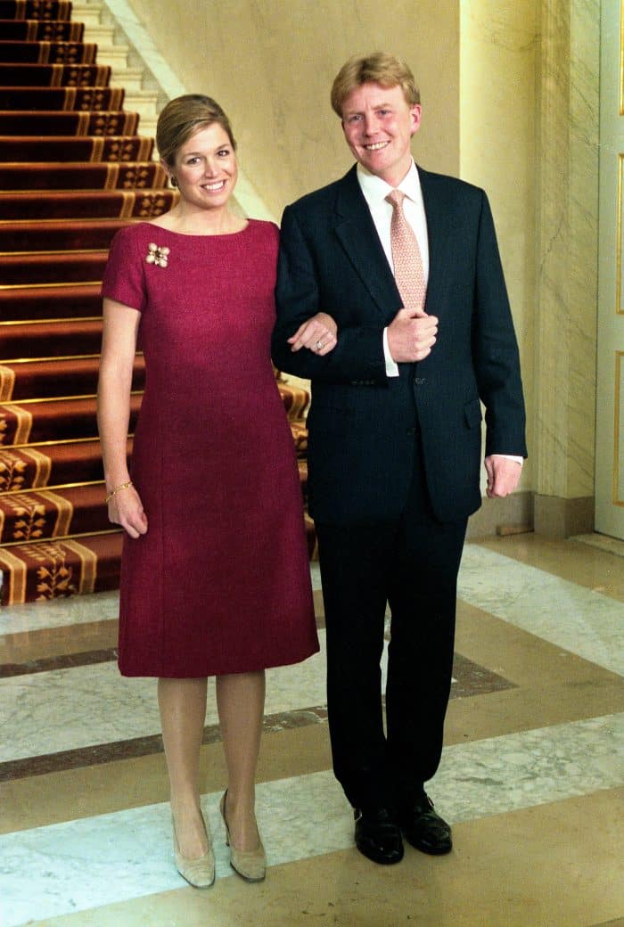 En de kleding die Máxima droeg? Máxima droeg een rode jurk, die op maat is gemaakt door de New Yorkse kleermaker Joseph Ting. Een jurk met een beetje een kort, maar ruim vallend model. Zonder zichtbare coupenaden. En Willem-Alexander? Zijn das heeft een bijzondere betekenis, want deze is door Máxima voor hem gekocht, tijdens haar reis naar Nederland. Niet verrassend: het is een exemplaar van Hèrmes, een merk waar Willem-Alexander regelmatig dassen van draagt. Ook na de verloving heeft Willem-Alexander deze stropdas nog regelmatig gedragen.