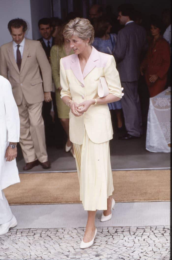 Prinses Diana zocht bij haar modekeuzes altijd naar een vleugje originaliteit. Dat vond ze bij Butter Yellow in de combinatie met zachtroze.