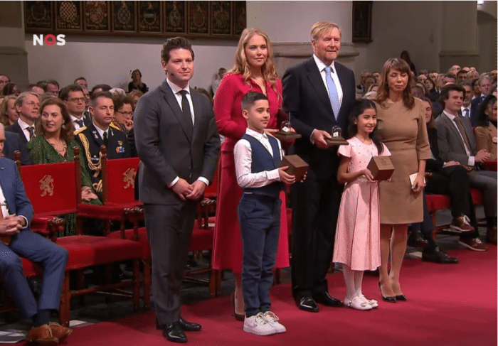 Netjes gekleed Amalia. Maar die vrouw die naast de koning staat heeft een te strakke jurk aan .