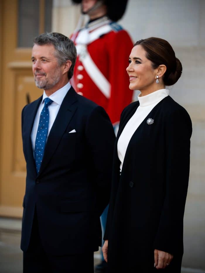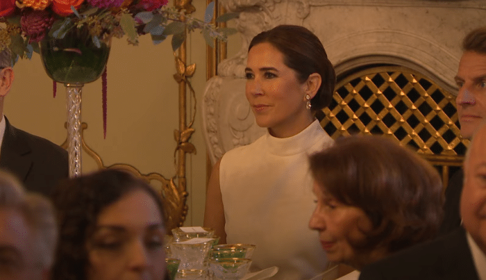 Koning Frederik en koningin Mary organiseerden een diner ter gelegenheid van de bijeenkomst van de Europese Politieke Gemeenschap (EPC) op 1 oktober 2025. Frederik en Mary ontvingen de gasten bij de vestibuletrappen voor het Paleis van Christiaan VII in Amalienborg. Koningin Mary droeg een offwhite top van het Australische label Carla Zampatti op een broek van het label in dezelfde kleur. Helaas zijn er vooral foto’s waarop Mary haar mantel van Harris Wharf over haar outfit aan heeft. Hopelijk komt het ensemble binnenkort beter in beeld én gaat ze nog veel vaker bij Carla Zampatti shoppen (je weet wel, die donkerblauwe jurk, die de lezers hier zo mooi vonden, komt er ook vandaan).