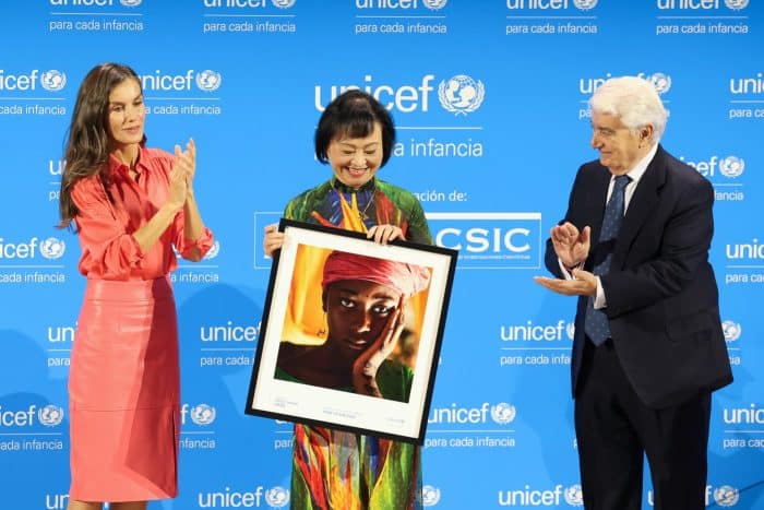 Daarnaast leidde koningin Letizia eergisteren, als erevoorzitter van UNICEF Spanje, de uitreikingsceremonie van de UNICEF Spanje Awards 2025. Daarbij koos Letizia voor een koraalrode leren rok met een blouse in dezelfde kleur. Ook deze items komen allebei van Hugo Boss.