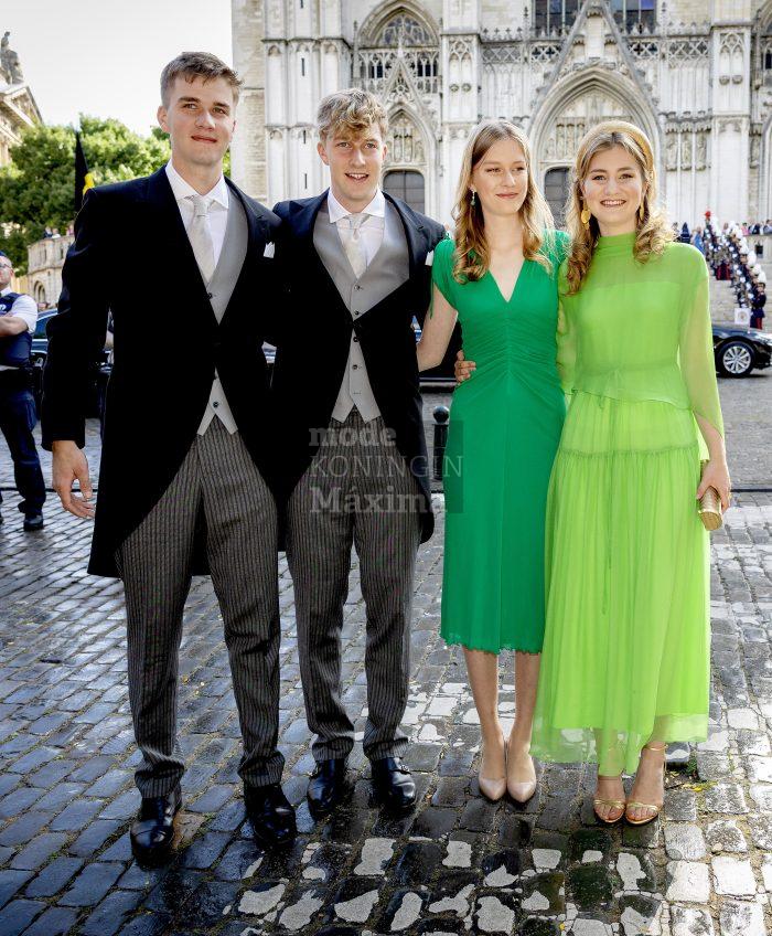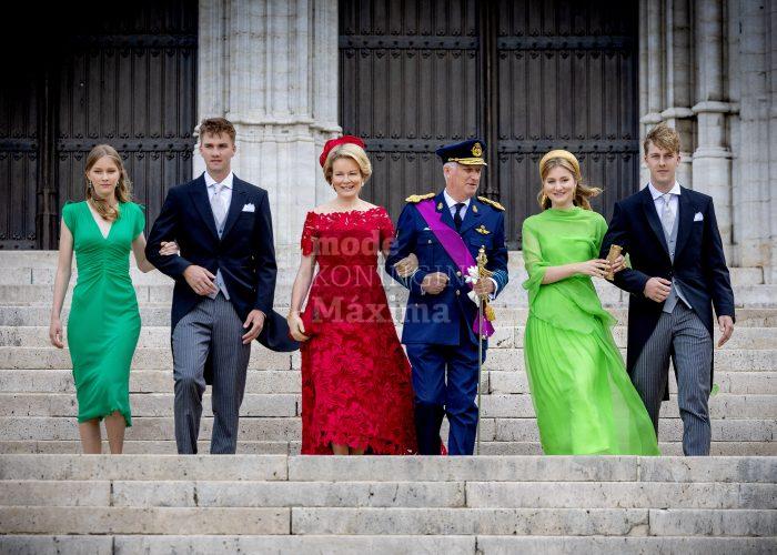 Ik geloof dat ik in de minderheid ben maar ik vind het Belgische koninklijke gezin er fantastisch uitzien. De outfit van Mathilde is in een prachtige kleur rood, het model van de jurk staat haar mooi en de kanten stof vind ik ook geslaagd. Elizabeth is een plaatje om te zien, leuke frisse kleur groen die past bij haar leeftijd (Natan mag wel ophouden met de capejes) en geweldige sandaaltjes. Zuslief in een bescheiden maar verder prima jurkje. En de heren ook mooi gekleed. Wat mij betreft: niets meer aan doen👌