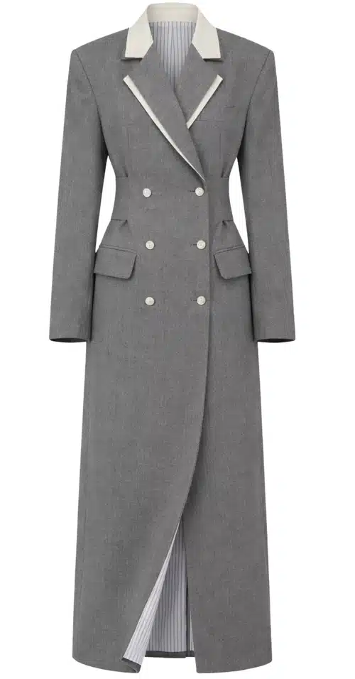 Het werd in Engeland een corset- robe-manteau genoemd en als je de achterkant ziet, snap je het ook. Het is net een corset met veters en al. Heel apart, weet niet of ik het mooi kan vinden. Gisterenavond nog de filmpjes gezien, verslag van de gehele dag en dan is de mantel heel apart en mooier van kleur, dieper dan hij hier op de foto’s overkomt. Slordig dat hij niet mooi gestoomd en/of gestreken is, ben ik iet van haar gewend. Het hoedje vind ik schattig, ja het past Catherine gewoon, deze hele look weer, het hoort bij haar en is haar signatuur geworden. De avondjapon is heerlijk zwierig maar zoals hier bekend van mij, ik gruwel van een aangerimpelde hals zoals we vaak zien bij Natan die zich er altijd makkelijk en goedkoop vanaf maakt door er elastiek door te rijgen, dat gaat “lubberen” omdat de rek er uiteindelijk uitgaat. Echter ik moet zeggen dat de aangerimpelde hals hier mooi verwerkt is in een keurig boordje zoals het eigenlijk ook hoort, en daardoor valt het aangerimpelde voorpand mooi strak uit, zoals het hoort. De jurk is voor haar doen vrij simpel, kleur staat haar erg mooi. Prachtige juwelen, schoenen, tasje erbij kortom het is haar wederom gelukt in een eenvoudige japon. 1 minpunt dit keer van mij, jawel ; Het haar had ik nu wel weer eens opgestoken willen zien, maar ze blijft ook voor mij, zoals JRN ergens schreef de nr, 1 gevolgd door koningin Mary van Denemarken. Ik denk dat zodra Catherine koningin wordt zij altijd het haar zal opsteken bij galadiners en dat ze het nu nog lekker los laat hangen, wat geen straf is voor het oog want wat een prachtig haar heeft ze toch!! Vond het ook erg lief om te zien dat koning Charles de hand vastpakte bij Windsor Castle van de Nigeriaanse premier, de twee heren toch op leeftijd, liepen hand in hand saampjes door het grind en de zanderige pad van Windsor Castle om naar binnen te gaan. Tja het liep niet makkelijk door het grind.