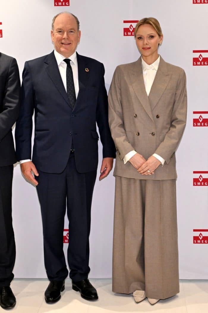 Voor de opening van het hoofdkantoor van SMEG werden prins Albert en prinses Charlene opgetrommeld. De prinses hulde zich in een nieuw broekpak, maar dat is niet het enige dat opvalt.