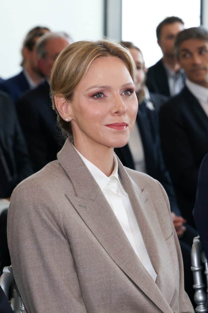 In Monaco is botox net zo essentieel als een jacht of een Ferrari. De meeste gezichten lijken zo perfect gladgestreken dat ze de windtunneltests voor de Formule 1 met glans zouden doorstaan. De nationale munteenheid is niet de euro, maar de ‘eenheid Jeugd’. Dat prinses Charlene ook fan is, is geen geheim. Tijdens de opening van het nieuwe hoofdkantoor van SMEG liet ze weer een nieuwe versie van zichzelf zien. Naar het label achter het bruingrijze, nieuwe broekpak wordt nog gezocht. Het ontwerp past door de ruime, boxy pasvorm perfect bij het huidige modebeeld.