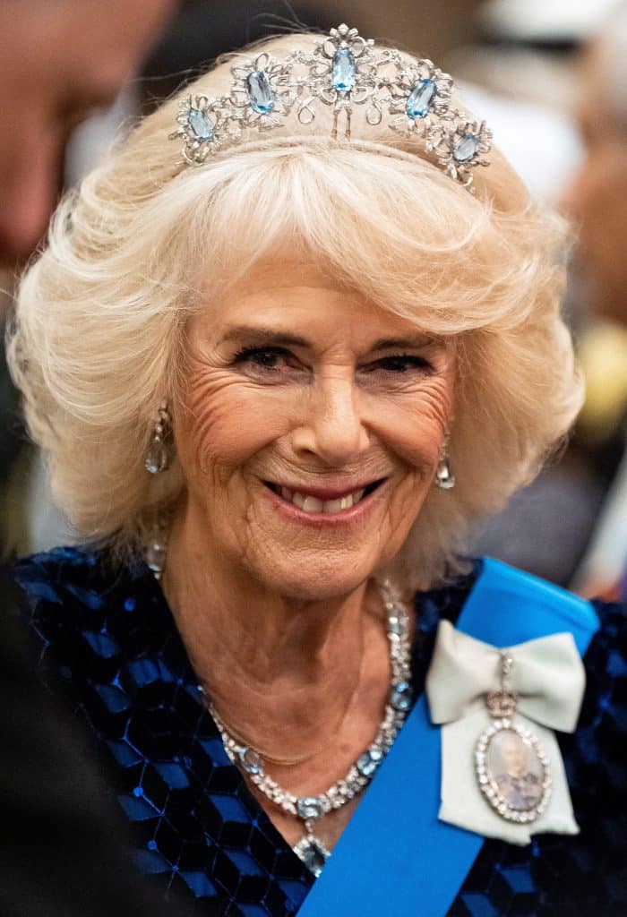 De tiara, afkomstig uit de koninklijke kluis, werd voor het eerst gedragen door koningin Camilla in november 2024. Koning Charles en koningin Camilla woonden destijds de receptie bij van het diplomatieke corps in Buckingham Palace.