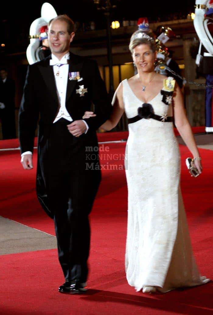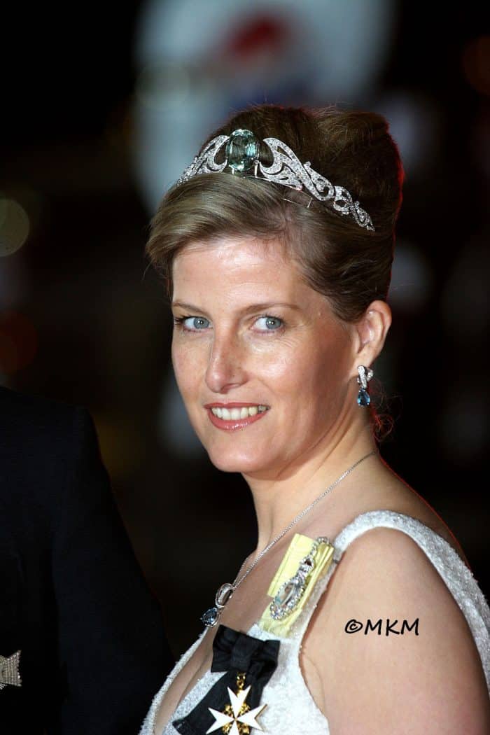 Sophie, de toenmalige gravin van Wessex, droeg de tiara voor het eerst bij de troonsbestijging van prins Albert van Monaco, zie de foto’s hier onder.