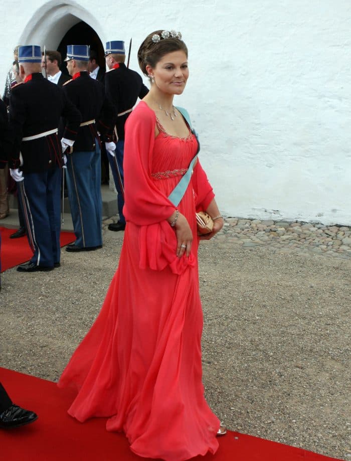 Op 19 juni 2010 trouwde de Zweedse kroonprinses Victoria met haar droomprins Daniel. Haar bruidsjapon werd ontworpen door de Zweedse ontwerper Pär Engsheden. Hij maakte de trouwjurk van ivoorkleurige zijde. Het opvallende detail is de boothals. Wat een prachtige, elegante, maar eenvoudig japon! Een vijf meter lange sleep, versiert met kant, is bevestigd vanaf de achterkant van de taille. De sluier wordt op zijn plaats gehouden door de cameo tiara. Ook haar moeder, koningin Silvia, droeg deze tiara op haar trouwdag.