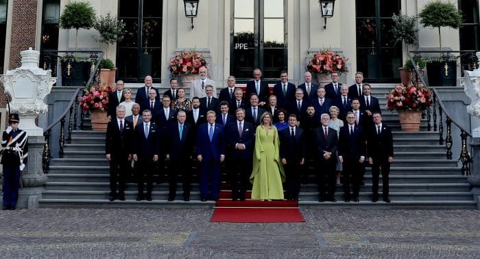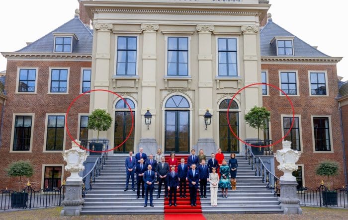 Op 24 juni 2025 waren alle ogen gericht op Paleis Huis ten Bosch. Van president Trump tot minister-president Schoof: alle politieke kopstukken schoven aan bij het diner van koning Willem-Alexander en koningin Máxima. Mede vanwege de veiligheid en ruimte moesten de media – op enkele uitzonderingen na – tevreden zijn met een plekje onderaan het bordes. Dat dáár de meeste foto’s genomen zouden worden, stond dus buiten kijf. Een lange, rode loper werd uitgerold, lakeien aan weerszijden verhoogden de grandeur en dan waren er ook nog práchtige bloemstukken en wat struikjes op stam.