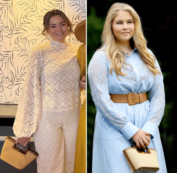 Het tasje dat de prinses bij zich heeft komt van Marina Raphael en werd eerder gebruikt door Amalia.