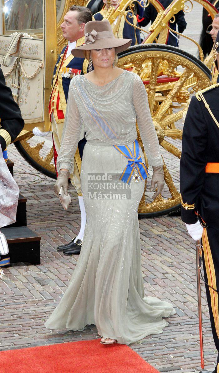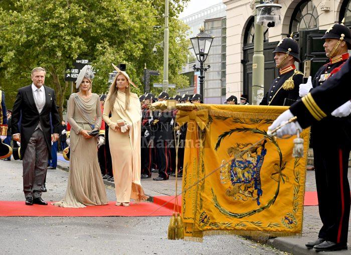 Máxima schitterend van top tot teen. De mooie japon zit als gegoten en geweldig die hoed met het opgestoken kapsel.
