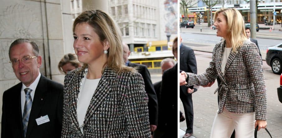 Het jasje debuteerde Máxima in 2006, tijdens de overhandiging van een cheque aan Stichting Nyenburgh. Het kledingstuk is klassiek in de goede zin van het woord. Gemaakt van tweed, een strakke kraag, afgeronde voorpanden en een ceintuur voor wat extra taille. Máxima combineerde hem met een witte top en broek. Na het geslaagde debuut verdween het jasje in de kast, en twintig jaar later hebben we hem nog steeds niet teruggezien. Zonde, want dit kledingstuk kan met de juiste combinatie zeker nog een leuke look opleveren voor 2026. Hoe zou jij hem nog een tweede kans willen bieden?