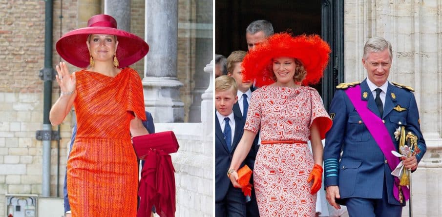 De oranje jurk van Maxima heb ik altijd afschuwelijk gevonden, met de rode hoed. Naar mijn smaak te kleurig. Bij Mathilde’s wit/oranje jurk vind ik een wijde en een smalle mouw niet leuk staan, dus deze beide jurken mogen weg.