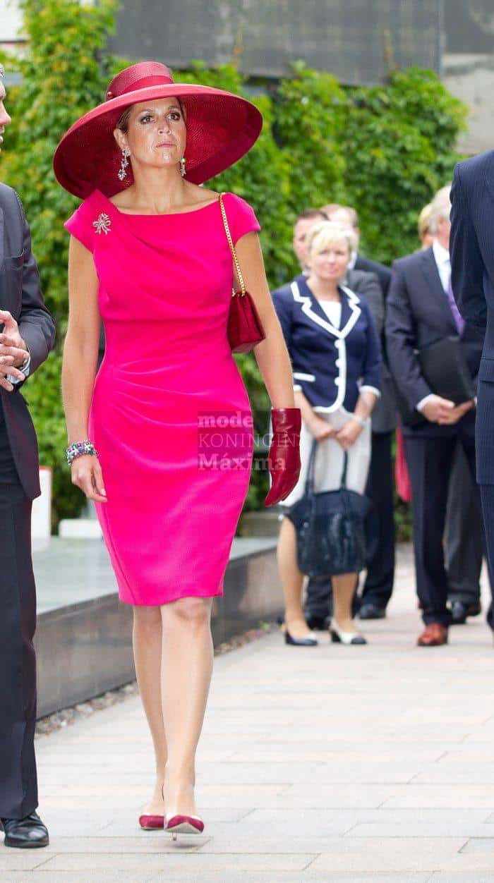 Met temperaturen boven de dertig graden is een schone set kleding altijd wel welkom. Normaal gesproken laat Máxima een kledingwissel achterwege, alhoewel de kamenier gedurende het staatsbezoek steeds achter haar aan reist met een volle kledinghoes. Dit keer ging de koningin toch overstag. De jurk van witte broderiestof werd omgeruild voor een felroze jurk met een opvallende, geplooide halslijn.