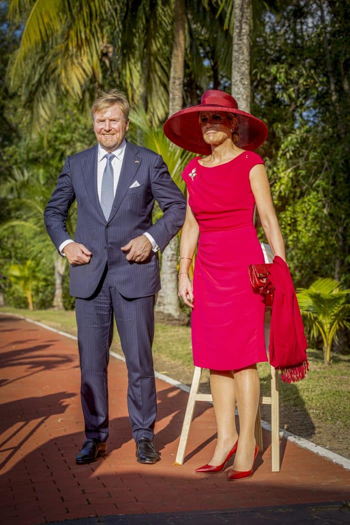 Het staatsbezoek aan Suriname begon de koningin in een witte overslagjurk van Natan. Aan het einde van de middag koos Máxima voor een kledingwissel.
