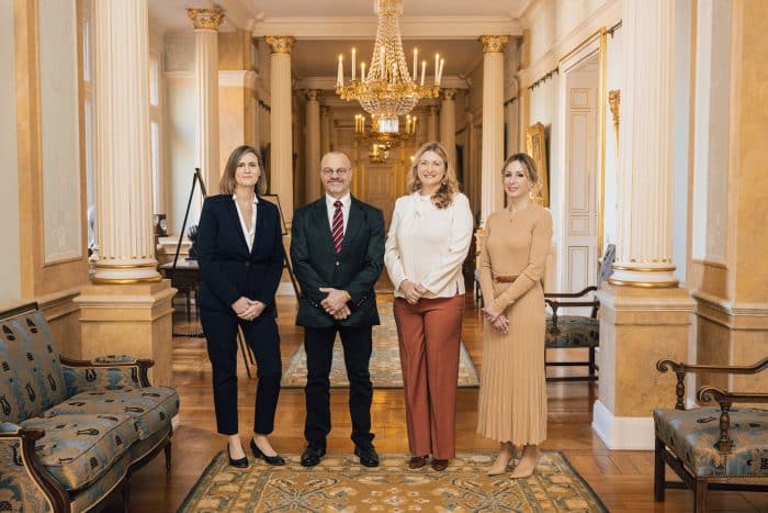 De Luxemburgse Groothertogin hadden we al even niet gezien, maar eind van de week kwam ze weer even in beeld. Stéphanie schonk, net als Letizia vaak doet, aandacht aan mensen met een zeldzame ziekte. Woensdag ontving ze de voorzitter van de vereniging “ALAN Rare Diseases Luxembourg”, Anja Di Bartolomeo, vergezeld door haar bestuursleden Daniel Theisen en Gwennaëlle Crohin. Stéphanie ging voor een eenvoudige look, bestaand uit een oudroze broek met een witte blouse.