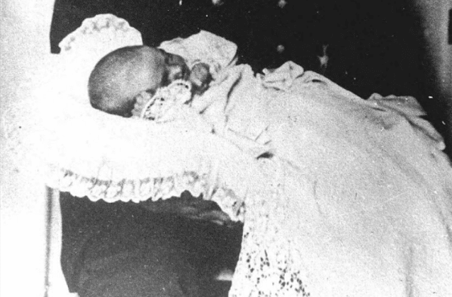 Het is dezelfde jurk als die hij draagt kort na zijn geboorte.