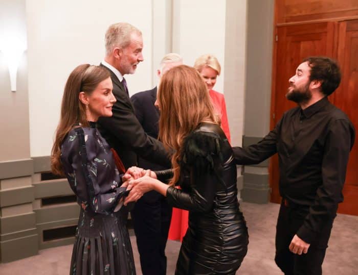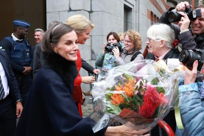 Erg mooie portretfoto van koningin Mathilde; wel jammer dat je dan die dikke make-up laag zo scherp ziet. Koningin Letizia hartelijk met haar ontmoetingen. Dat oogt haar zoveel leuker dan staande geposeerde foto’s. ik zag haar in het weekoverzicht ook in een rode jurk; en hoewel dit zwart haar uitstekend staat vond ik die rode jurk veel mooier, maar wellicht hebben ze tevoren goed afgestemd? Ook koningin Mathilde oogt beter op foto’s waar ze met mensen in contact is; dan heeft ze ook geen heel licht ingezakte houding; dan staat ze ontspannen rechtop.