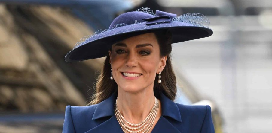 Catherine ziet er stijlvol uit in een elegante marineblauwe jasjurk van één van haar favoriete ontwerpers, Catherine Walker. De jasjurk heeft schoudervullingen, dubbele knopen en een plissé rokgedeelte. Het lijkt er op dat Catherine dezelfde hoed draagt als in 2023 tijdens Commonwealth Day, zij het met een lichte aanpassing. Er is nu voile op de rand van de marineblauwe hoed bevestigd.