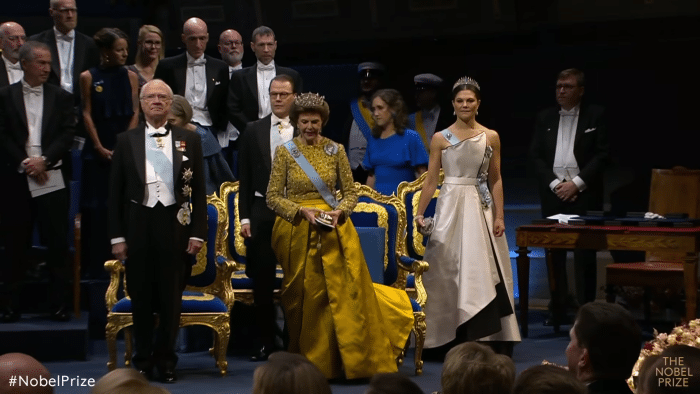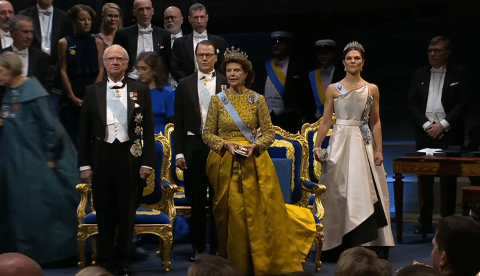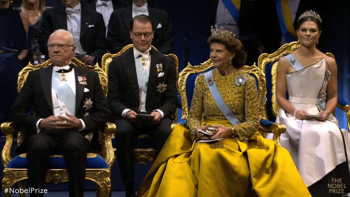 In Zweden zijn de Nobelprijsuitreikingen van start gegaan, en zoals gebruikelijk, is het weer volop glitter en glamour. Naast koning Carl Gustaf en koningin Silvia, zijn kroonprinses Victoria en prins Daniel, evenals prins Carl Philip, prinses Madeleine en Chris O’Neill aanwezig.