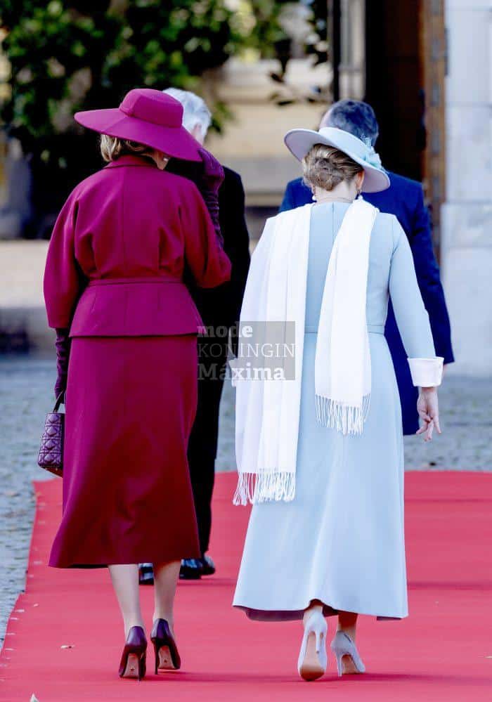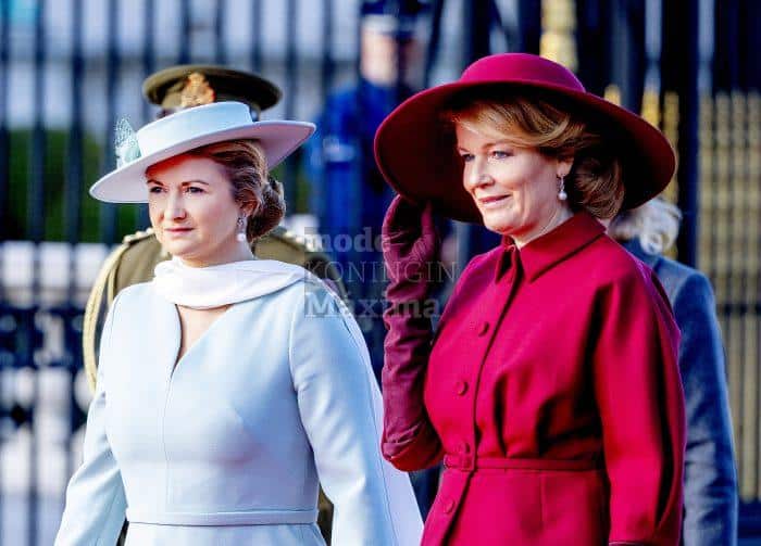 Wat een mooie blauwe jurk draagt Stephanie! En voor haar doen heel hoge hakken. Koningin Mathilde heeft er zin in zo te zien, charmante foto’s van haar. Hoe zij op die keitjes kan lopen blijft een raadsel voor me. Ik neem aan dat de stilettos na één keer dragen kunnen worden afgeschreven.
