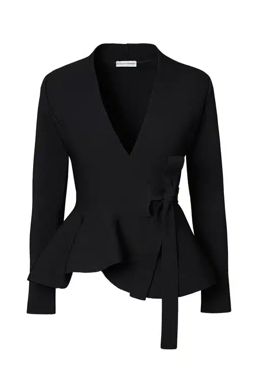 Het zwarte pak is mooi en de luchtige top maakt het geheel helemaal af.
