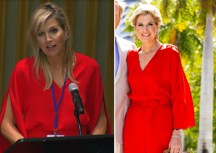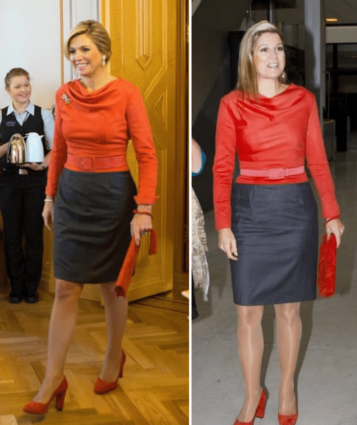 Toen Máxima in september 2024 haar werkjubileum van de VN vierde, omlijstte ze die dag met een nieuwe, felrode outfit. Qua belijning en kleur was de set haar op het lijf geschreven, maar toch werd ik er niet heel enthousiast van. Hoe dat kwam? Door de onrust op de bovenverdieping. Als kleding al een zekere mate van chaos vertoont, bijvoorbeeld door wapperende mouwen, dan moet een kapsel dat beeld niet versterken. De grens tussen levendig en rommelig kan namelijk flinterdun zijn. Dat werd ook wel duidelijk in april 2026, toen Máxima de outfit opnieuw droeg met een keurige updo. Dat leverde gelijk een heel ander plaatje op. En ja, nu ben ik dus wél verliefd op de outfit.