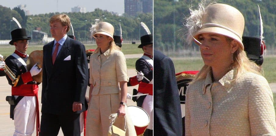 In de eerste jaren van het nieuwe millenium liet modeontwerper Edouard Vermeulen van Natan zich volop inspireren door de kleding van Jackie Kennedy. Lees: korte jasjes, monochrome ensembles en grote knopen. Het setje dat Máxima droeg bij de afsluiting van het staatsbezoek aan Argentinië is daar een goed voorbeeld van. Het jasje is voorzien van tien grote, beklede knopen. Twee op de mouw, twee op de kraag, twee op de zakjes en vier middenvoor. De stof met een werkje is ook gebruikt voor de rok met kenmerkende Natan-plooien.