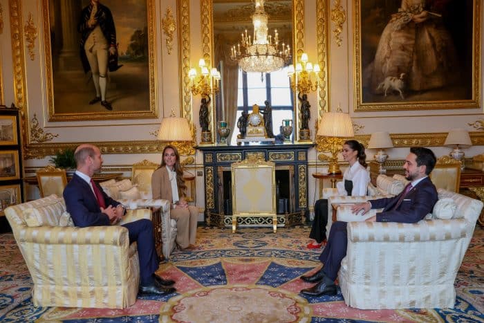 Kroonprins Hussein en zijn vrouw prinses Rajwa van Jordanië, brengen momenteel een bezoek aan Groot-Brittannië. Woensdag brachten ze onder andere een bezoek aan William en Catherine, de prins en prinses van Wales.