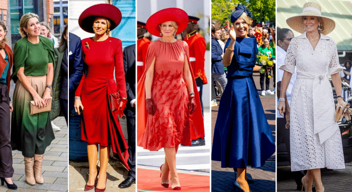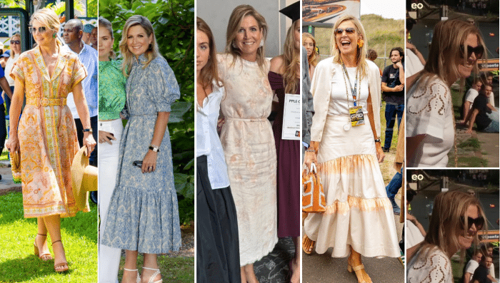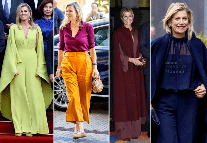 Als ik zo alle outfits op een rijtje bij elkaar zie, valt het mij op dat Maxima zeker lef heeft qua mode en veel durft, qua kleur, qua accessoires en ook qua soorten kleding. Ik bedoel, het is geen Angela Merkel die 101 dezelfde saaie(!) broekpakken droeg in net een iets andere kleur.