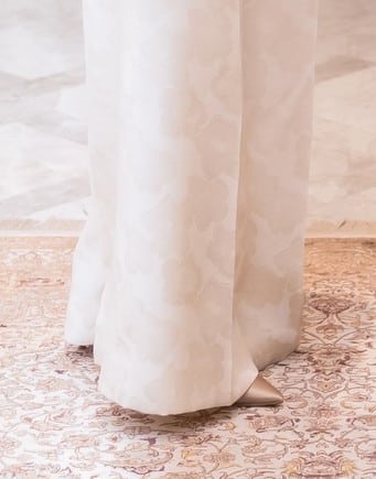 Hier komt het ingeweven bloemenpatroon iets beter in beeld: