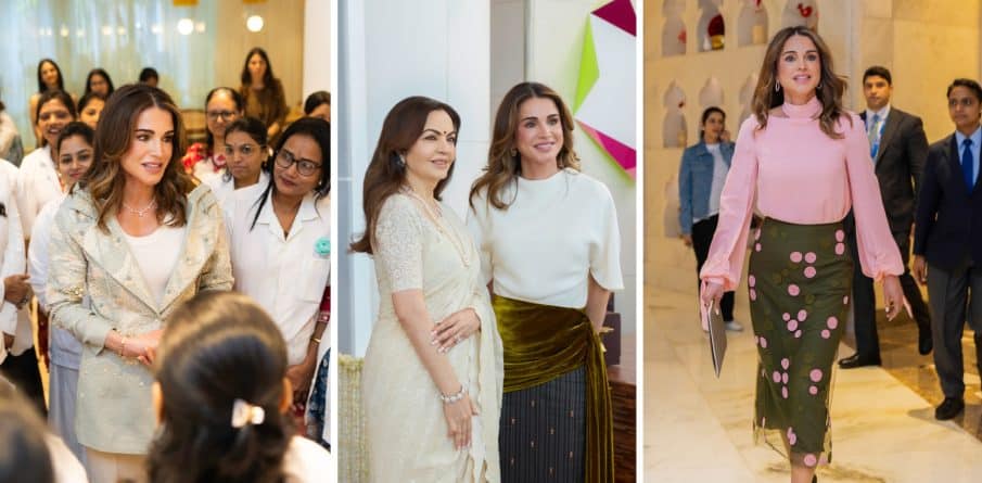 De Jordaanse koningin Rania heeft de afgelopen dagen een bezoek gebracht aan India. Daarbij kwamen 4 verschillende outfits voorbij.