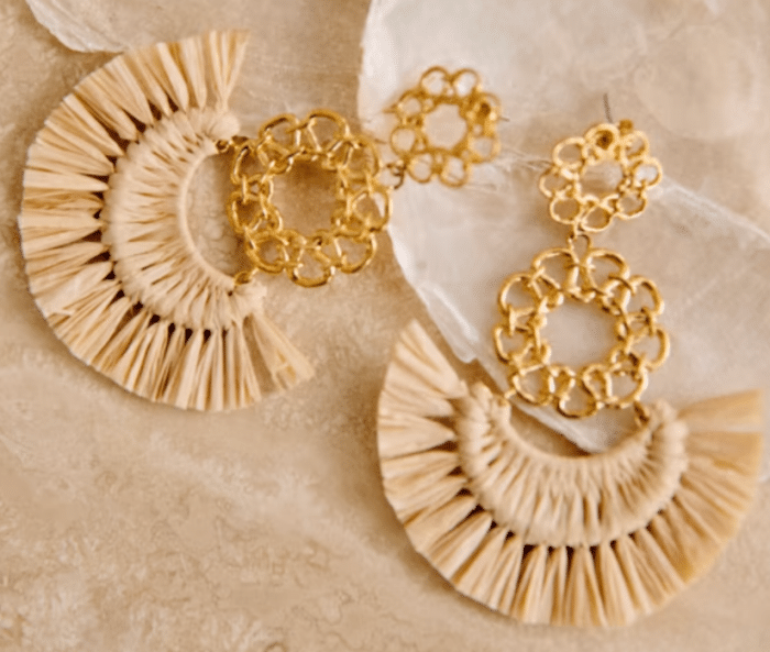 Een groot contrast met de gezellige groene middagjapon met waaierende blaadjes; en wat een leuke bijpassende oorbellen!