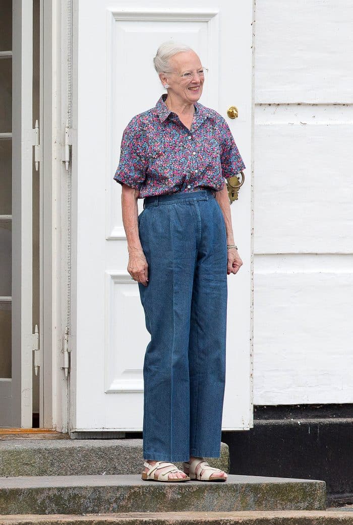 Als ze op vakantie is, of het nu op Graasten slot is of in Cahors, draagt Margrethe regelmatig een spijkerrok of spijkerbroek.