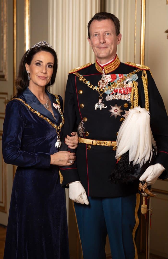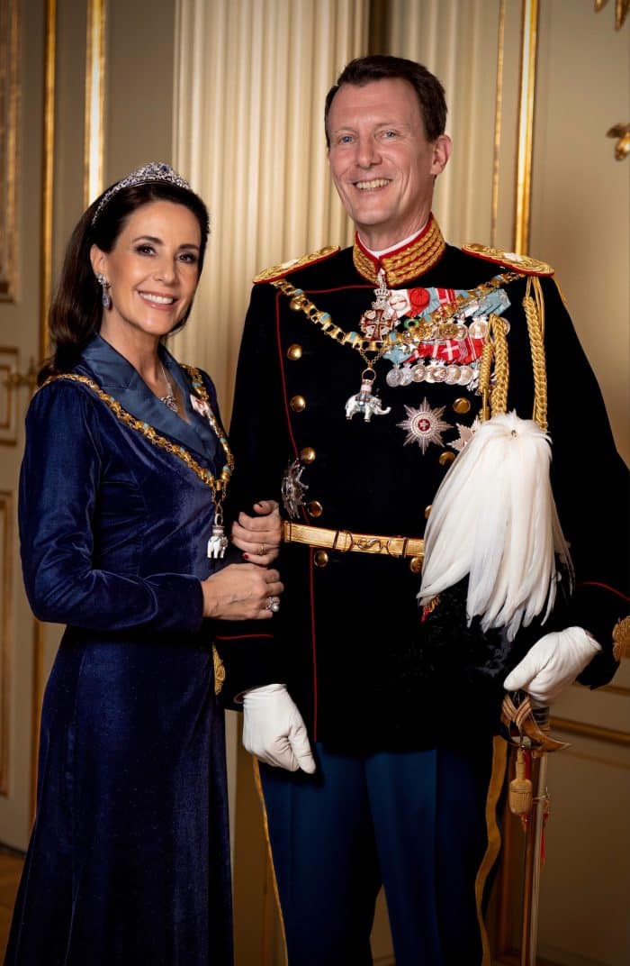 Ook zijn er nieuwe galaportretten vrij gegeven van prins Joachim en prinses Marie. Deze zijn niet door een officiële fotograaf gemaakt, maar door een medewerker van het Deense Koninklijk Huis. Aan de kleding te zien zijn de foto’s gemaakt op 1 januari 2026, waar prinses Marie in deze donkerblauwe galajapon en met de Nuits Claires tiara te zien was.