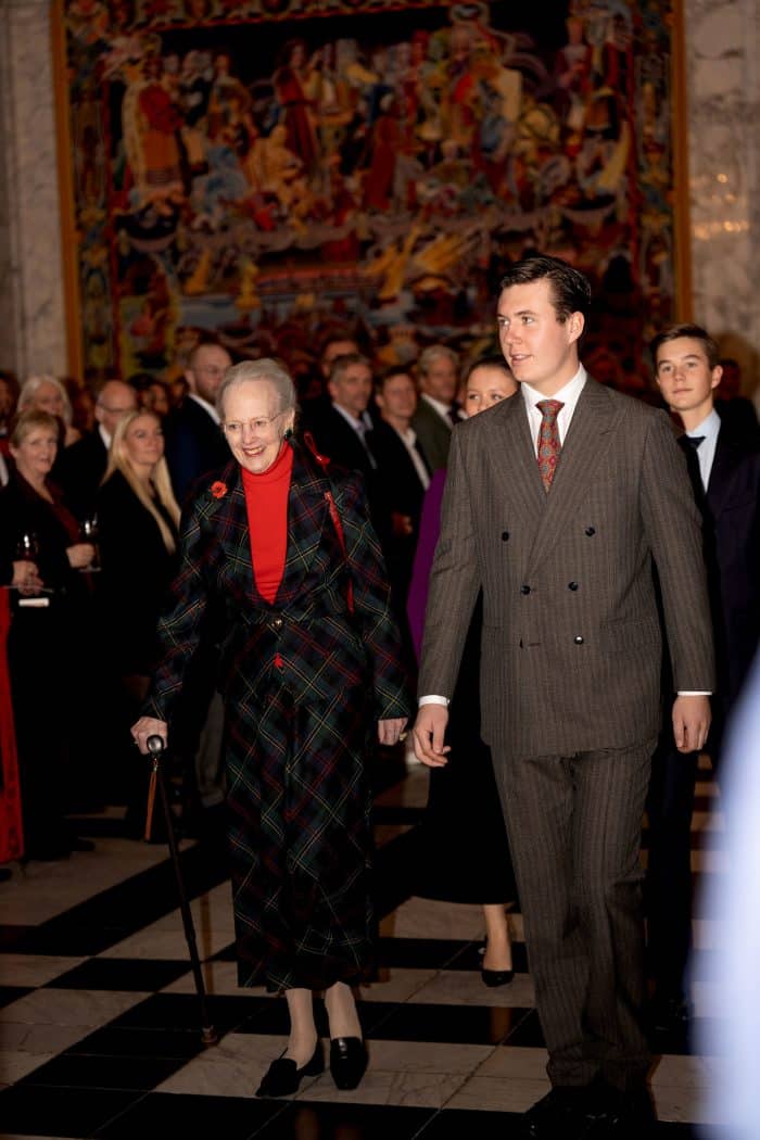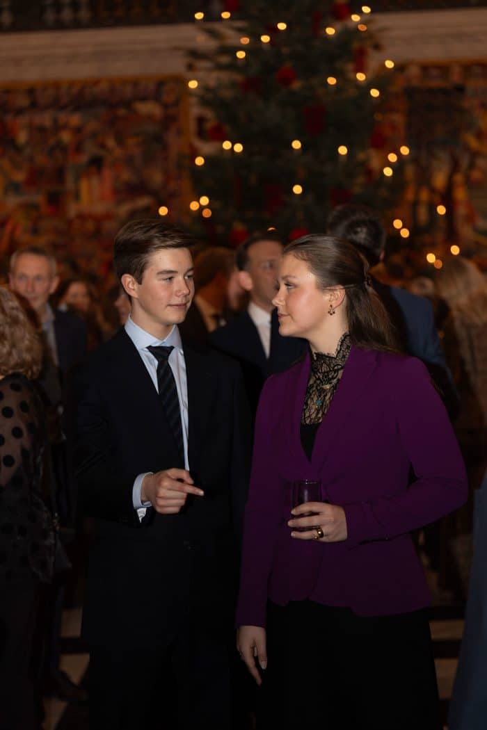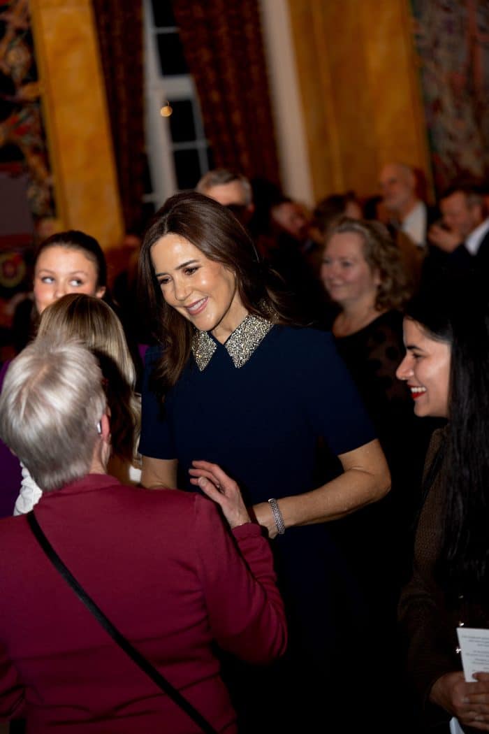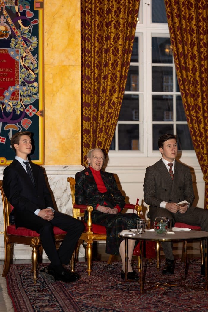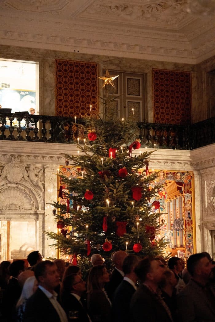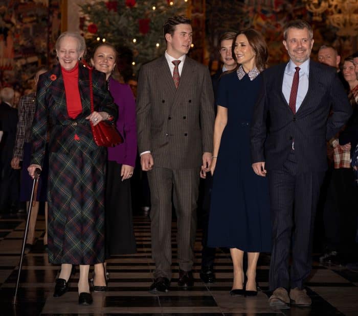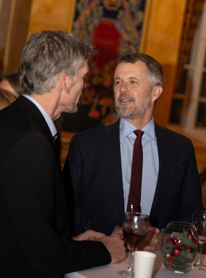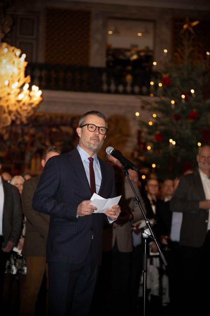 Vanuit Denemarken verschenen er meer foto’s. Op 17 december waren koning Frederik en koningin Mary, samen met kroonprins Christian, prinses Isabella, prins Vincent en koningin Margrethe aanwezig bij de kerstviering in Paleis Christiansborg. De kerstviering was speciaal voor medewerkers en hun naasten en werd gehouden in de Grote Zaal van Christiansborg. Koningin Mary draagt een donkerblauwe midi jurk met glitterkraag (label: Rebecca Vallance).