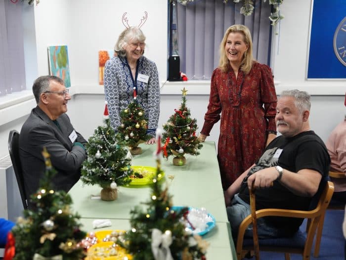 Sophie, de Hertogin van Edinburgh, was afgelopen donderdag aanwezig bij een kerstevenement van Disability Initiative in Camberley, Het gaat hier om een initiatief voor mensen met een beperking. De Hertogin deed, met kerstmuts op, gezellig mee aan van allerlei activiteiten. Zo hielp ze onder andere mee de kerstboom versieren.