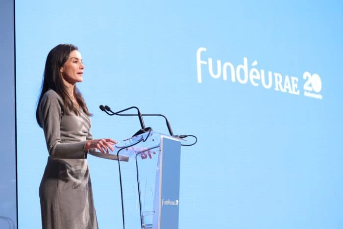 Ook was de Spaanse koningin aanwezig bij de viering van de herdenkingsbijeenkomst ter gelegenheid van het 20-jarig bestaan van de Fundéurae Foundation. Dit is een initiatief van persbureau Efe en de Koninklijke Spaanse Academie ter bevordering van correct Spaans taalgebruik in de media. Koningin Letizia draagt een lichtgrijze jurk van Cortana, met een zwarte riem.