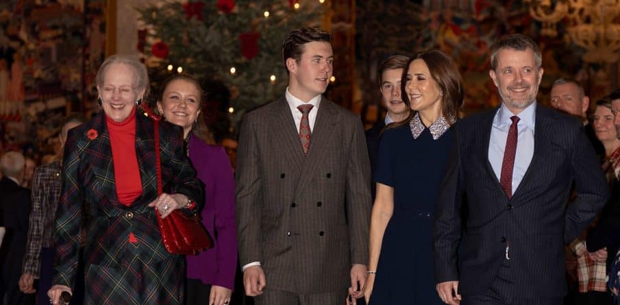 Vanuit Denemarken verschenen er meer foto’s. Op 17 december waren koning Frederik en koningin Mary, samen met kroonprins Christian, prinses Isabella, prins Vincent en koningin Margrethe aanwezig bij de kerstviering in Paleis Christiansborg. De kerstviering was speciaal voor medewerkers en hun naasten en werd gehouden in de Grote Zaal van Christiansborg. Koningin Mary draagt een donkerblauwe midi jurk met glitterkraag (label: Rebecca Vallance).