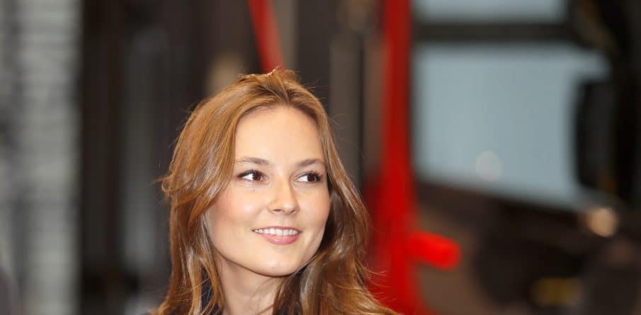 Kroonprinses Mette Marit koos voor een ecru rok met haar rode jasje van Christian Dior.