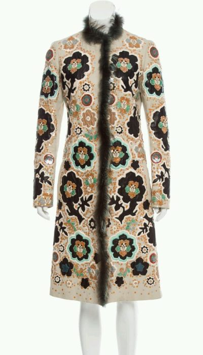 Barbara Bui is een vooraanstaande Franse modeontwerpster en de oprichtster van het gelijknamige luxe modemerk. Ze staat bekend om haar “rock-chic” esthetiek, waarbij ze vrouwelijke elegantie combineert met stoere, androgene invloeden. In 2005 schaft Máxima een bijzondere bloemenmantel bij haar aan. Het ontwerp is voorzien van een rand groene faux fur. Op de rest van de mantel is met broderie ‘d art een kleurrijk bloemenfestijn weergegeven.
