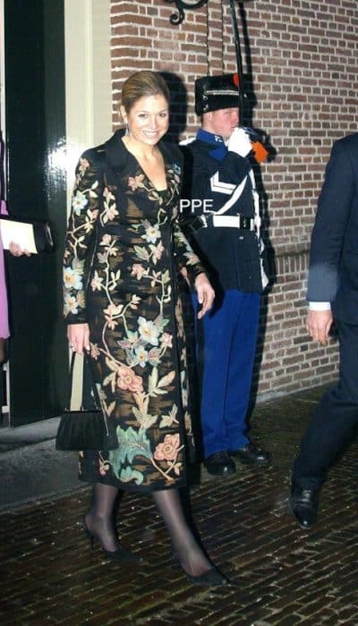 Als Máxima in 2002 haar intrede doet aan het Nederlandse hof, raakt ze in de ban van modeontwerper Valentino. Naast haar trouwjurk bestelt ze bij hem ook diverse mantelpakjes, broekpakken én een rijk geborduurde bloemenmantel. Helaas doet laatstgenoemd kledingstuk, ondanks het geslaagde debuut, slechts één keer dienst.
