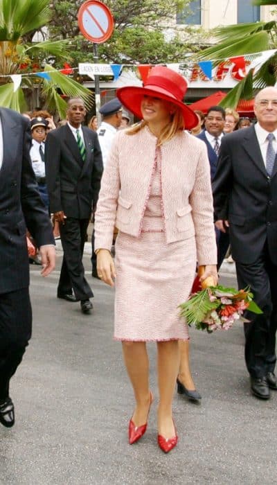 In 2001 schaft Máxima bij modehuis Natan een jasje, top en bijpassende rok van wit-rode bouclé aan. Máxima draagt de set regelmatig, soms ook met een rode broek in plaats van de rok.