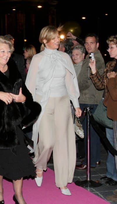 In 2012 draagt Máxima de blouse opnieuw, maar nu met een extra ceintuur om haar taille en een andere, lichtgrijze broek.