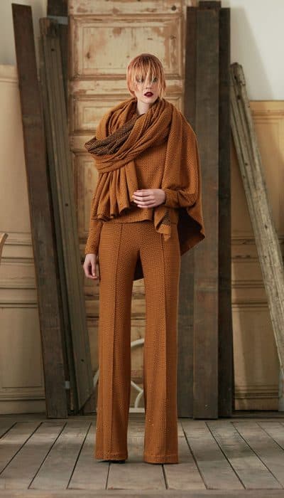 Borduurwerk is het handelsmerk van Jan Taminiau, maar tegen een uitstapje op z’n tijd zegt hij heus geen nee. Zo levert hij aan Máxima een rop, pantalon en riante omslagdoek van groene wol.