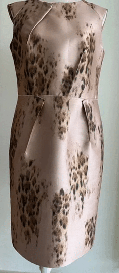 Hoe draag je een dierenprintje of chique wijze? Vraag dat maar aan modehuis Natan. In 2012 levert het modehuis aan Máxima een aansluitende jurk met een bijpassende mantel. In de zachtroze zijde is subtiel een dierenprintje verwerkt. Máxima draagt de jurk ook zonder jas of met een jasje van camelkleurige wol.