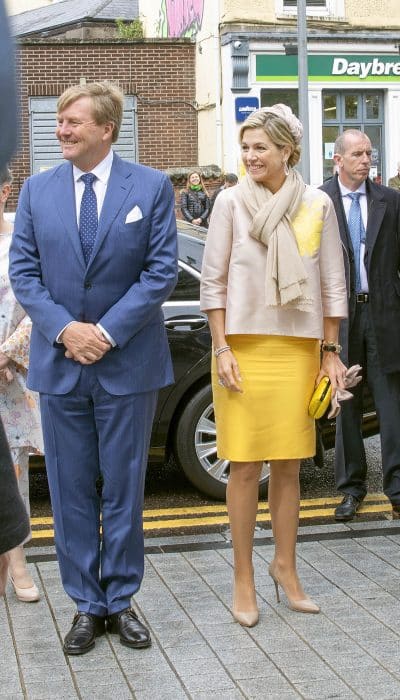De kleur van de top doet niks voor Máxima. Te flets. Ze kan beter diepe warme tinten dragen. De rok is te strak, en eigenlijk ook wat kort. Het model van de top haalt niet het mooiste in haar figuur naar boven. Het enige leuke vind ik eigenlijk het idee van een schilderij op de top. En ja, ze komt met het totaalplaatje nog best aardig weg.