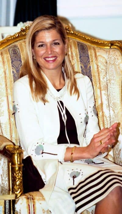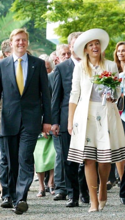 Als Máxima kort na haar huwelijksreis naar Ghana afreist, heeft ze een koffer vol nieuwe kleding bij zich. Het is haar eerste buitenlandse reis als prinses en die wil ze natuurlijk wel succes voltooien. Naast een groen broekpak, een grijs broekpak en een beige mantelpakje heeft ze ook een set bij zich die afwijkt van haar gebruikelijke prinsessenstijl. Het betreft een rok en een lang vest van Marni, die voorzien zijn van bruine strepen en grijze bloemen. Bij het debuut in Ghana combineert Máxima de set met een bruine top.
