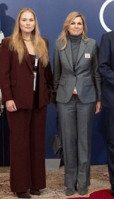 Als Máxima de opening van de Olympische Winterspelen 2026 bijwoont, draagt ze een grijs broekpak van TeamNL. De broek en het jasje worden gecombineerd met een coltrui in dezelfde kleur.