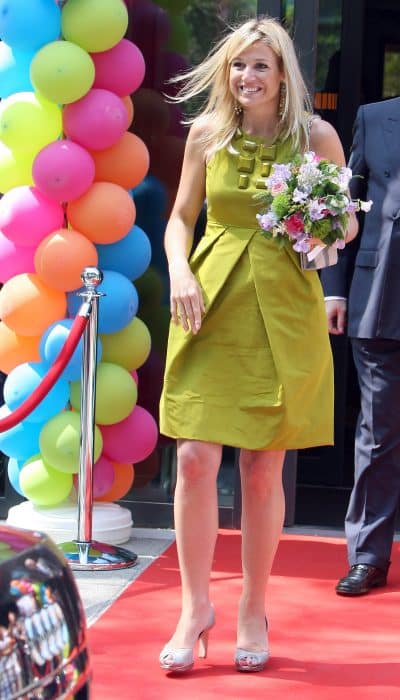 Zo rond 2009 versiert Edouard Vermeulen, de creative director van Natan, veel van zijn ontwerpen met sierstenen en kralen. Zo ook deze groene jurk. Vanuit de taille zijn vier plooien aangebracht, waardoor het rokgedeelte veel volume heeft.